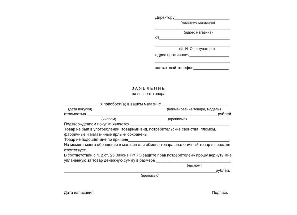 - Заявление от покупателя на возврат