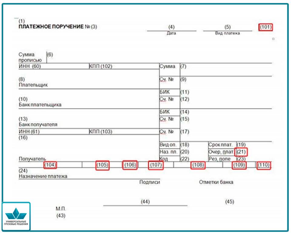 Обязательные реквизиты платежного поручения