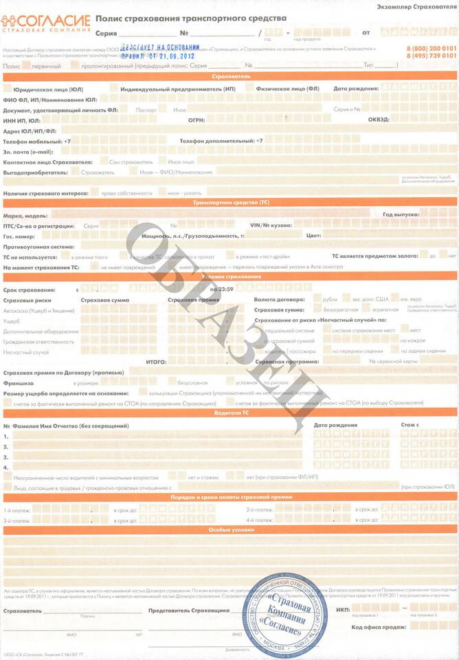 Цветовая гамма | Зависит от страховщика, обычно фирменные цвета компании |