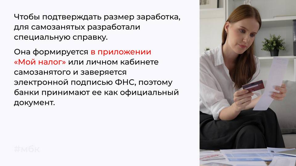 Справка из приложения "Мой налог" | Официальное подтверждение доходов | Формируется автоматически в приложении |